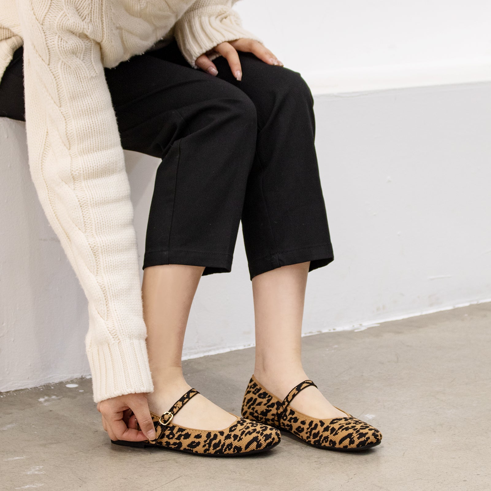 Soesyi Knit Flats for Women Square Toe Flats Casual Ballet Flats with Ankle Strap,Mary Jane Shoes Women Comfortable for Dressy Office