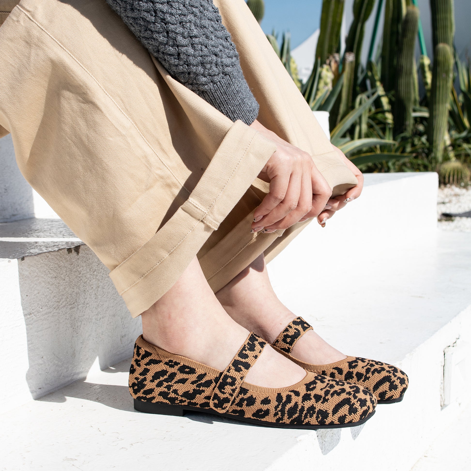 Soseyi Wide Toe Box Flats Women Comfort Slip On Ballet Shoes Mary Jane Dressy Knit Flats with Adjustable Straps Washable Casual Office