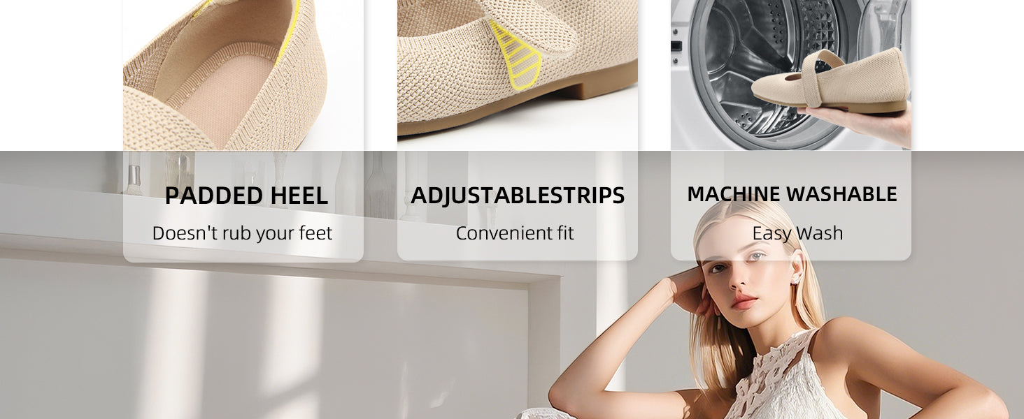 Breathable Knit Upper: Soesyi women's flats are made of high quality breathable knit fabric, let your feet enjoy free breathing in the hot summer, stay dry and comfortable at all times